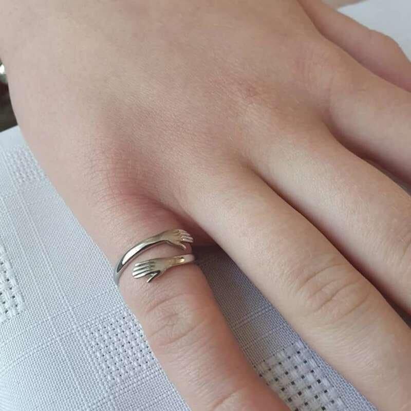 Un abrazo es símbolo de amor, protección y cariño. Una forma de expresar lo que con palabras a veces no sabemos. Lleva este anillo para recordar el afecto propio, o por alguien especial.